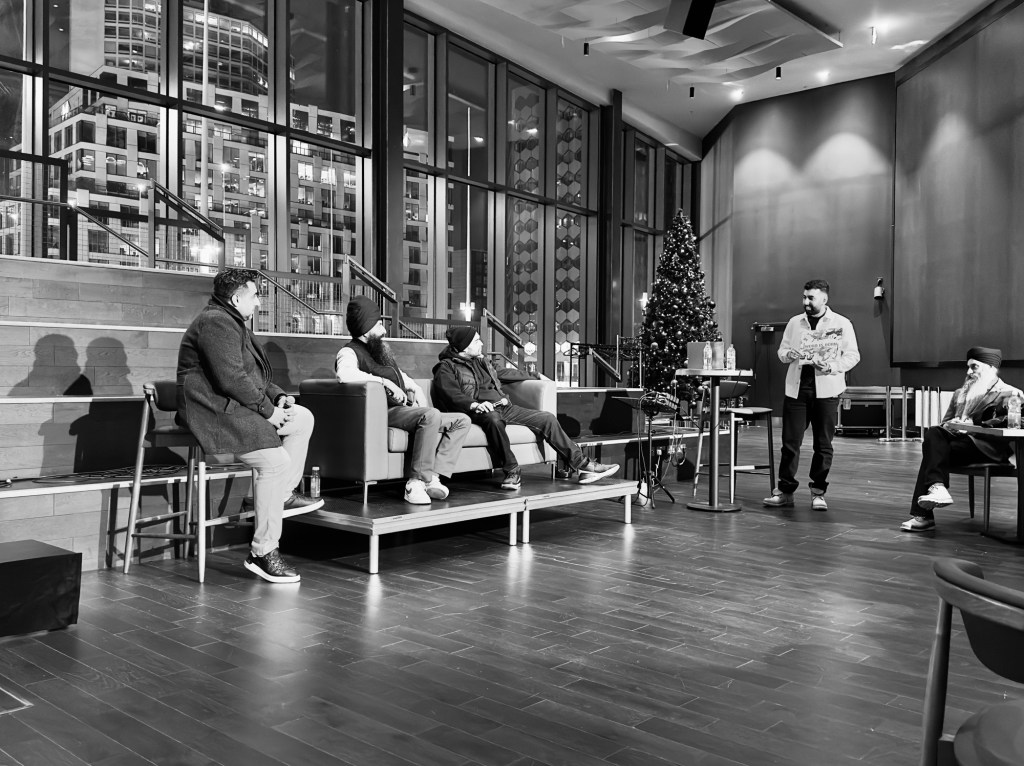 Walking Bhangra-encyclopedia and BBC Asian Network presenter Dipps Bhamrah opened the event and gave a short history of how the duo came together, the work they created, the ripple effect of their audacity to call out the hypocrisy and the lack of creativity within the industry at the time and the cultural touchstone that this album has become over time. Co-hosting alongside Bhamrah was Amar from BhangraTapeDeck, who brought the duo to the stage and kicked off the listening session. As they both sat down, they very quickly turned from being the stars onstage to some cool uncles spitting free game. Specialist (Mandeep Singh) and Tru-Skool (Sukhjit Singh Olk) tell the tale of how this project came to be before we started listening to snippets of the album throughout the evening. Absent of the wonders of WeTransfer and the internet, Sukh and Mani would regularly travel down to Leicester’s Fosse Park Shopping Centre, from their respective homes and exchange tapes they had of beats and vocals in the car park. They both brought five vocals each to the table and co-produced songs that they felt, together, embodied their ideology around what this next wave of British-Panjabi music should sound like. It was a challenge to balance the very raw, traditional sounds of Punjab, standout lyrics and how westernised the production should be but suffice it to say, they did a great job.