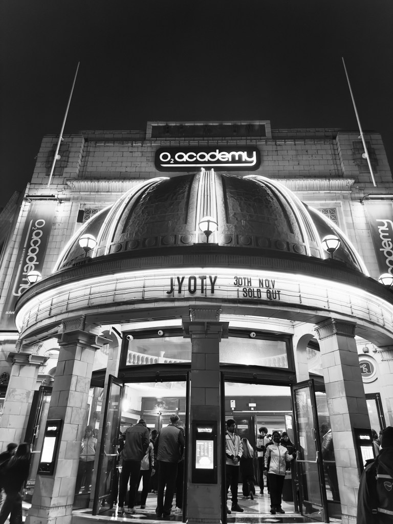 One month later, Jyoty finds herself looking up in tears at a banner that says the words ‘sold out’ next to her name in huge block letters, on the face of the O2 Academy Brixton—an internationally renowned, iconic music venue close to a lot of people’s hearts in South London. What was once an art deco cinema in its heyday, is now a thriving entertainment venue that has hosted a roster of some of the most impactful and creatively daring artists of our times, such as Amy Winehouse, The Prodigy, Tyler, The Creator, Missy Elliott and now Geuzenveld’s finest. With tickets selling out in minutes, the hype had built up so much in the run-up to the night that you could feel a buzz in the air when you stepped onto the sloped floor of the O2 Academy. As you enter the venue, you are very quickly reminded that she consistently attracts an incredibly diverse crowd: it ranges from age, race, gender and sex no matter which corner of the globe she plays and her crowds are the best too—I have a theory about why this is but I digress. You also see a huge merch stand towards the back of the ground floor, where her team are selling handheld fans, tote bags and hoodies, alongside t-shirts that say ‘I Bought This T-shirt So Jyoty Could Pay For Her Brixton Show’.
