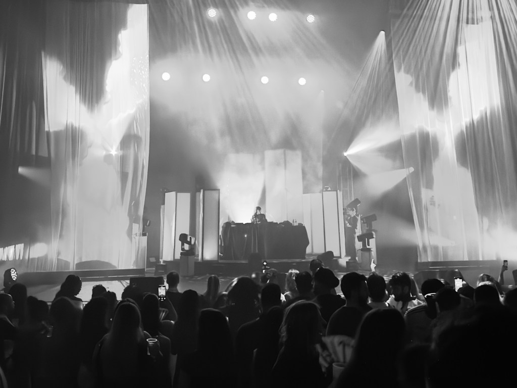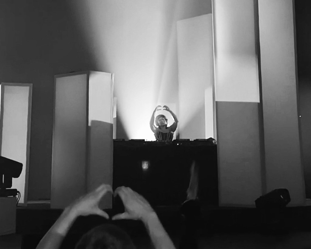 She emphasized to her social media audience that she was not profiting from the show but rather investing in stage design and production and that because of this, she would be losing money across the board. She opposed the idea of using the upper balcony for dancing and kept ticket prices accessible, even though she could have charged more. Everything was thoughtfully planned, with the stage positioned at the back to encourage audience interaction rather than focus on her. Occasionally, tall, rectangular structures blocked the view of Jyoty on the decks, while visuals and animations by Melly helped illustrate Jyoty’s journey over the years to the audience. We saw Jyoty and her clipboard outside of The Nest, as a door girl, clips of her early radio interviews playing back on old-school televisions, Club Jyotiana/Jyoty City visuals and her finally arriving at the O2 Academy Brixton. The lighting perfectly matched the music, and a standout moment was realizing the volume was just right—my ears weren’t ringing.