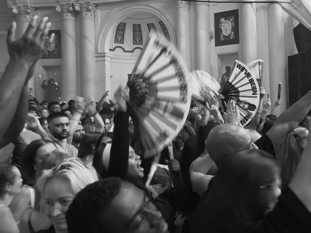 She starts off the European leg with a show at Lab11 in Birmingham—one of the city’s best, most versatile warehouse club-style venues. Her stage setup is simple and intimate: three DJ decks, surrounded by the fluttering flames of multiple incandescent candle lights and a lit incense stick, flooded with a bright orange-gold tone from the light box above. She’s not performed alone the entire tour, she’s on a mission to platform as many DJs and their sounds and skillsets as possible. DJ Izeforshort opens the night with a set that morphs from R&B edits and House remixes to full-on Notting Hill Carnival mode. From being in Jyoty’s Twitch chat during lockdown to sharing multiple lineups, Izeforshort was a no-brainer choice for her. He drew in that growing crowd like a pied piper and got the people warming up from the cold weather outside. Not an hour into his set, his entourage passed out free custom Jyoty tour handheld fans to the crowd—a clever nod from Jyoty that she knows her audience well. After all, who wouldn’t love a little breeze while working up a sweat on the dance floor? The only other time I’ve received a free handheld fan was at Beyoncé’s Renaissance World Tour, and much like the Queen, a Jyoty ticket guarantees an unforgettable experience. In a surprising move, Jyoty played through the middle of the night and saved the coveted closer spot for Tida Kamara, who arguably played the best set of the night. She maintained her conviction that people wouldn’t leave once she finished playing her music; she believes at her core that people shouldn’t care about the DJ, that we should care instead about having fun while they soundtrack our night. Kamara established herself as the next DJ to look out for that night: her musical choices were wide-ranging, and she danced her way through her entire set, playing an hour longer than she was supposed to since the time moved back an hour at midnight. We found ourselves lost in the night, scream-singing our hearts out to Beyoncé’s Sweet Dreams until 3 am. That kind of pure, joyful energy in the air is part of the magic that ensues when you’re in a Jyoty crowd.