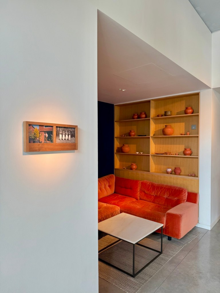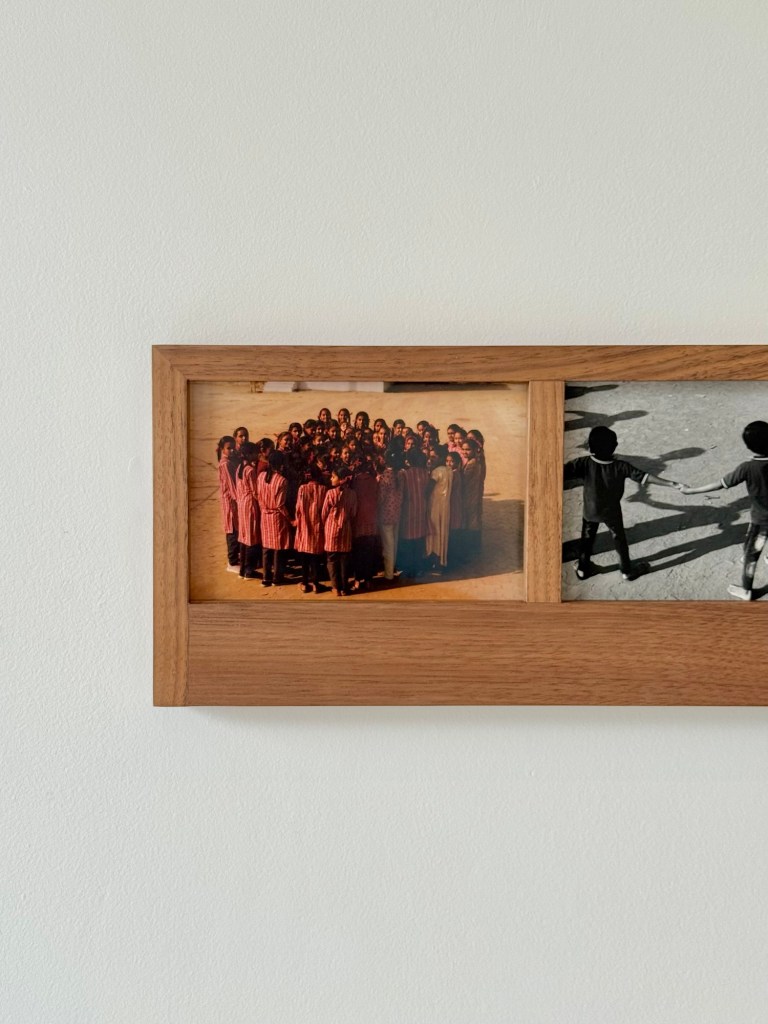 Half the works are presented as diptychs—two images speaking to one another across space, time, and memory. This format mirrors the exhibition’s central theme of living between worlds. The pairings create a visual dialogue that reflects the duality of life: tradition and selfhood, India and the UK. And it’s not just photographs. An old iPhone plays home recordings from London and Gujarat on the ‘Tapestry of Tapes’ (pictured above): crossing the street with his father, laughter over a kitchen table, trips to cobblestoned beaches and the kesar orange glow of an Indian sunset. Ordinary moments that most of us never think of as “art.” And yet, standing there, I realised we are art. Our rituals, our clutter, our everyday gestures—they’re all worthy of seeing, worthy of remembering. It’s incredible to think how our parents knew to record us simply being; that was enough to capture the essence of our culture, our traditions, our lives.